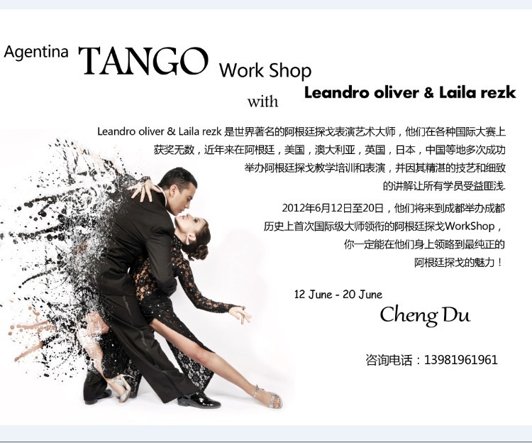 本中心的付代菊老師,多年從事舞蹈教學,有著專業的探戈理念,豐富的教學經驗。不僅如此,付代菊老師還以其對探戈的熱情感染著身邊每一位學員:為了能懂得真正的探戈文化,與阿根廷大師們深入交流,她一直都在堅持不輟地學習西班牙語;而為了使學員們能夠學到純正的阿根廷探戈,她又不惜萬里親赴布宜諾斯艾利斯感受當地風情,跟隨****探戈大師進行長時間學習,將地道的探戈帶回成都,分享與大家。